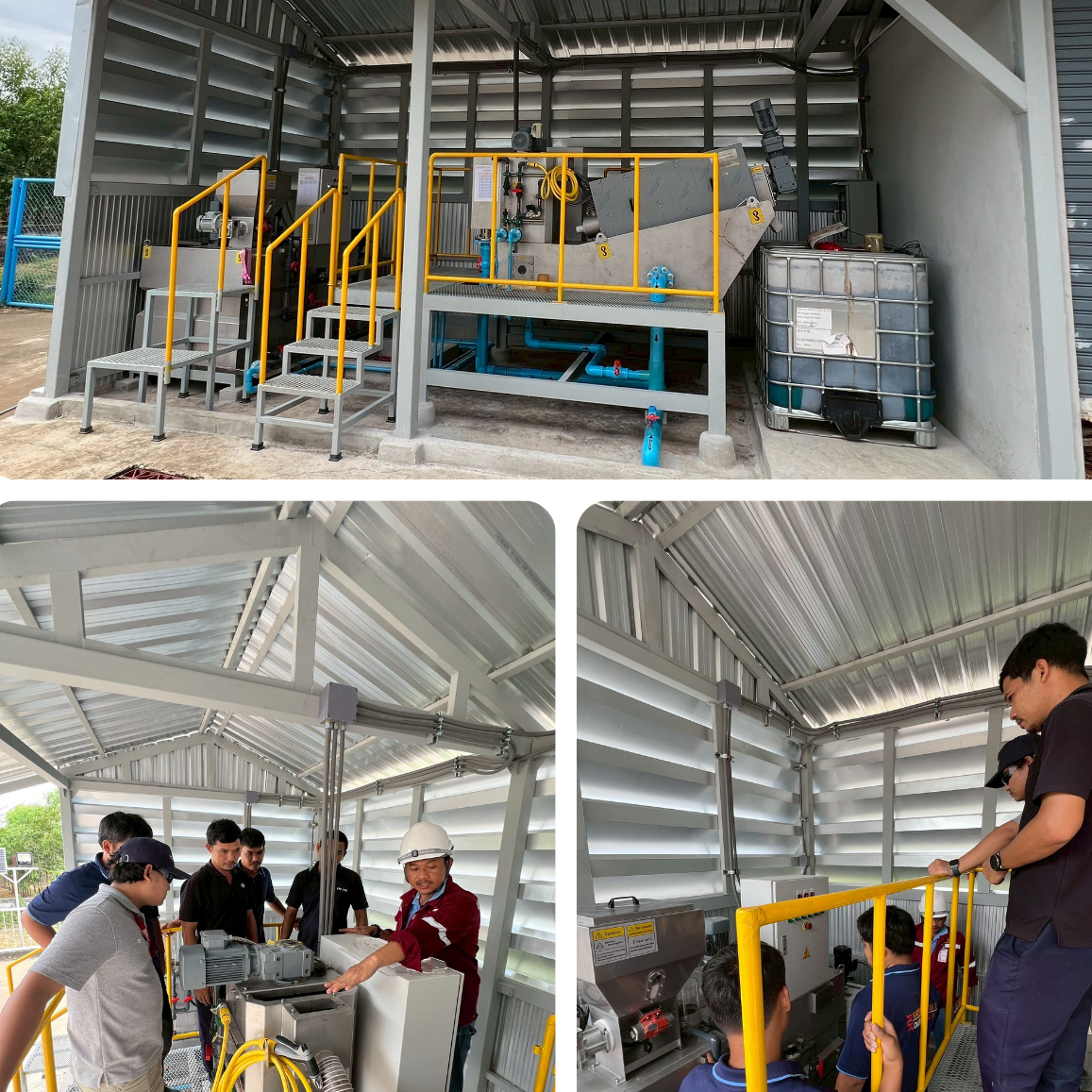 ทีมงานได้ทำการติดตั้ง ตรวจสอบ และทดสอบการทำงานของเครื่อง เพื่อให้การแยกของแข็งออกจากน้ำเสียเป็นไปอย่างมีประสิทธิภาพ ช่วยลดภาระของระบบบำบัดในขั้นตอนถัดไป และเพิ่มเสถียรภาพของระบบโดยรวม