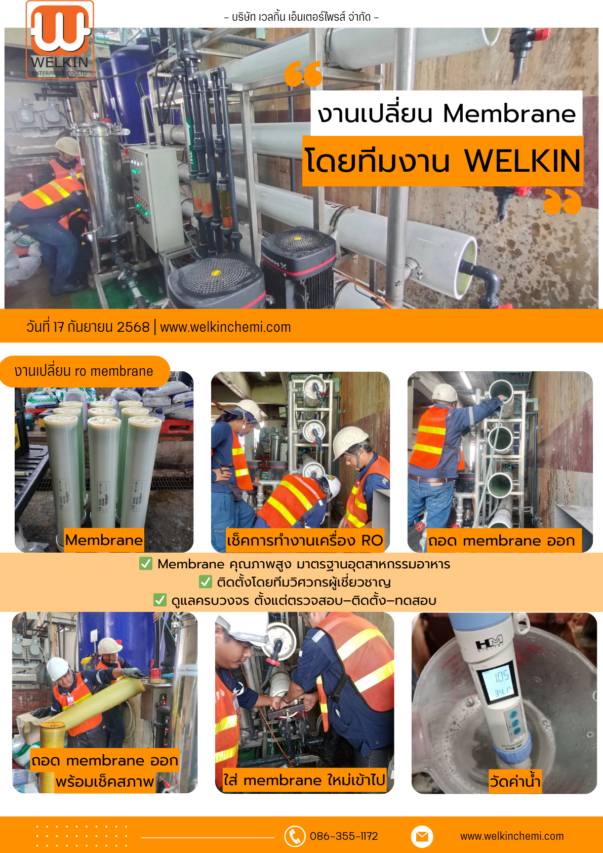 Welkin Enterprise ได้รับความไว้วางใจให้ดำเนินการ เปลี่ยน Membrane สำหรับระบบน้ำบริสุทธิ์ของบริษัท โดยทีมวิศวกรมืออาชีพของเราได้ดูแลแบบครบวงจร ตั้งแต่การสำรวจและวิเคราะห์สภาพเดิม ไปจนถึงการติดตั้ง ทดสอบ และส่งมอบงาน