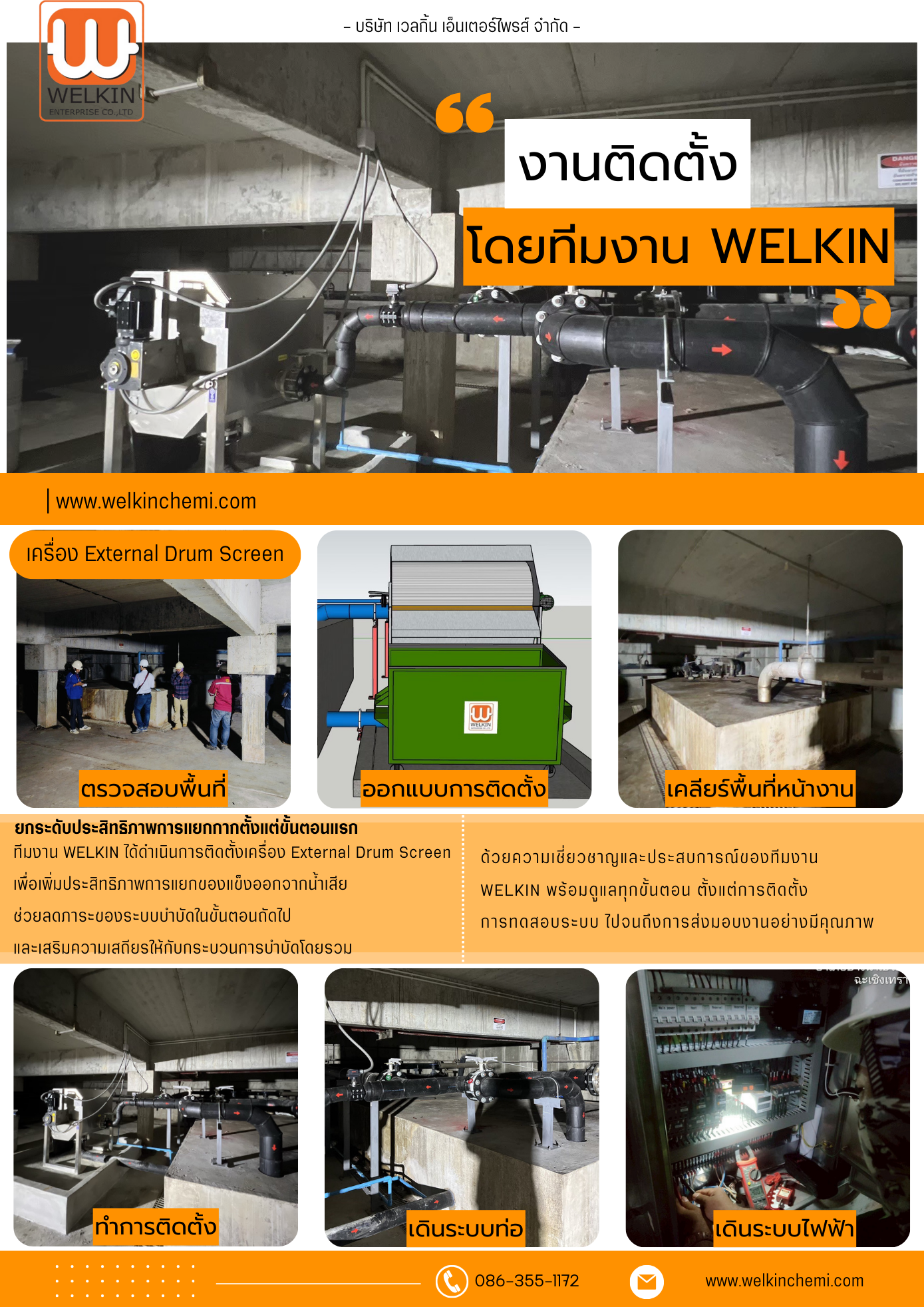 บริษัท WELKIN ได้ดำเนินการติดตั้งเครื่อง External Drum Screen พร้อมงาน Commissioning เพื่อให้ระบบสามารถเริ่มใช้งานได้อย่างสมบูรณ์และมีประสิทธิภาพ